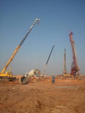 該工程巖層大部分為泥巖,巖層長(zhǎng)時(shí)間浸水會(huì)軟化,承載力降低,為保證樁端承載力,成孔后必須加快鋼筋籠安放、導(dǎo)管下設(shè)施工速度,縮短巖層浸水時(shí)間。需要鋼筋籠、施工設(shè)備提前就位加速施工。