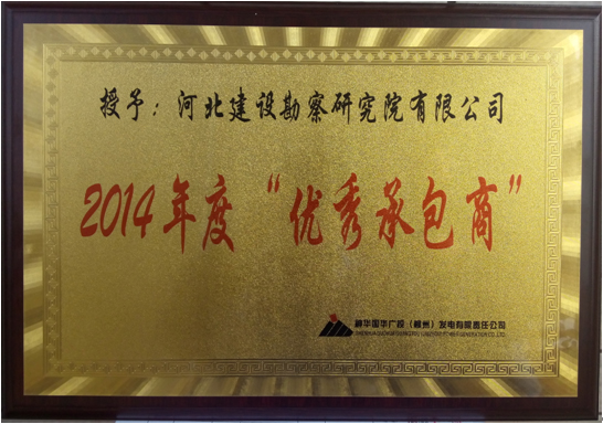 神華國華廣投(柳州)發(fā)電有限責任公司授予我公司2014年度“優(yōu)秀承包商”