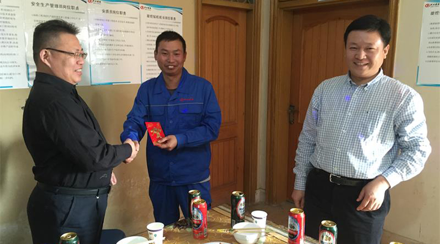 李總一行先后來(lái)到各個(gè)項(xiàng)目部,并與項(xiàng)目部全體員工一起聯(lián)歡座談。李總非常關(guān)心員工的生活情況,親切詢問大家過年期間的吃、穿、住、行等生活細(xì)節(jié),對(duì)過年期間項(xiàng)目部舉辦的各項(xiàng)活動(dòng)表示稱贊。為表示慰問,李總還代表總公司給各個(gè)項(xiàng)目分別頒發(fā)了紅包,祝福每一名員工在新的一年身體健康,闔家歡樂,日子過得紅紅火火。