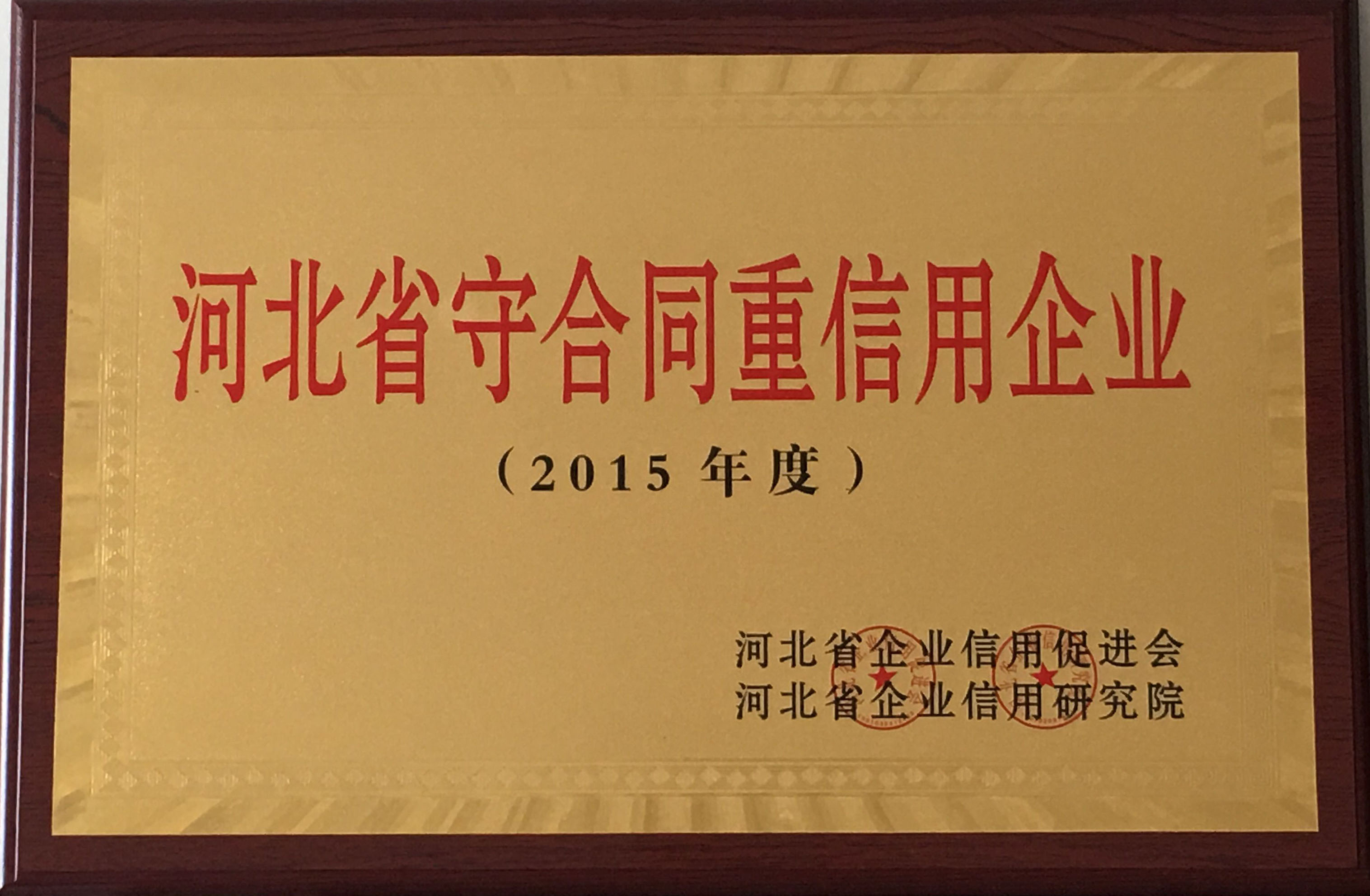 根據(jù)河北省文明辦、河北省企業(yè)信用促進(jìn)會印發(fā)的《“善行河北·誠信企業(yè)”主題實踐活動實施方案》,河北省企業(yè)信用促進(jìn)會、河北省企業(yè)信用研究院對“守合同重信用”企業(yè)進(jìn)行認(rèn)定,我公司被授予2015年度河北省守合同重信用企業(yè)稱號。