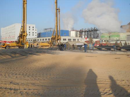 該工程施工種類較多,主要包括旋挖鉆孔灌注樁、灰土擠密樁和商品混凝土。我公司共完成旋挖鉆孔灌注樁樁基工程共完成1604根,施工了樁徑800mm的樁基667根,其中旋挖擴(kuò)底的114根,后壓漿施工的297根;樁徑1000mm的樁基937根,其中旋挖擴(kuò)底的58根,后壓漿施工的779根,設(shè)計(jì)混凝土方量20614.24方,樁身混凝土強(qiáng)度等級(jí)為C25和C30。樁孔直徑Φ400mm,樁長(zhǎng)6.0m,樁距1m,正方形布置的灰土擠密樁共完成2312根,樁孔直徑Φ400mm,完成延米15028m。