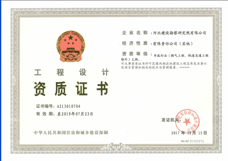 經(jīng)過艱苦努力,我公司于2017年12月15日取得了市政行業(yè)(燃?xì)夤こ?、軌道交通工程除外)設(shè)計(jì)乙級(jí)資質(zhì)證書,為我公司進(jìn)一步拓展相關(guān)市政設(shè)計(jì)業(yè)務(wù),進(jìn)而從事市政建設(shè)工程總承包業(yè)務(wù)創(chuàng)造了良好的條件。
