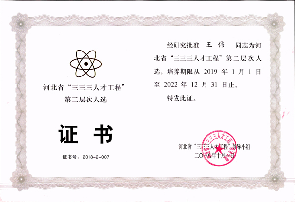 經(jīng)公司推薦,河北省人力資源和社會保障廳組織評審,河北省“三三三人才工程”領(lǐng)導(dǎo)小組批準(zhǔn),地下工程公司首席工程師王偉榮獲河北省“三三三人才工程”第二層次人選。