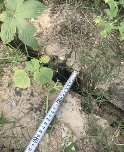 對(duì)壩體頂部地面裂縫進(jìn)行封閉,封閉可采用二八灰土,并夯實(shí)處理,防止降雨入滲使得裂縫進(jìn)一步擴(kuò)展,并在坡頂設(shè)置排水溝,防止進(jìn)一步入滲。