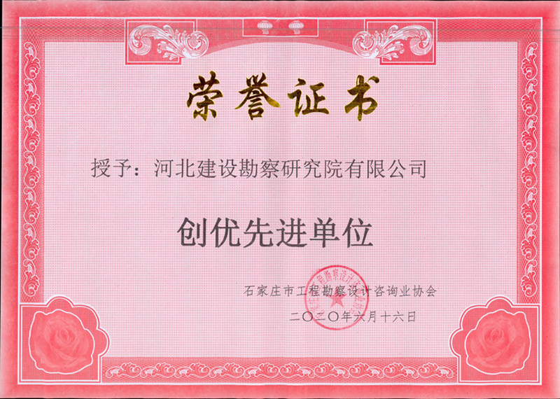 2020年6月22日,石家莊市工程勘察設(shè)計(jì)咨詢業(yè)協(xié)會(huì)下發(fā)文件《關(guān)于公布2020年度優(yōu)秀工程勘察設(shè)計(jì)行業(yè)獎(jiǎng)評(píng)選結(jié)果的通知》(石設(shè)協(xié)字[2020]5號(hào)),我公司被授予“創(chuàng)優(yōu)先進(jìn)單位”稱(chēng)號(hào);公司申報(bào)的江蘇LNG接收站擴(kuò)建工程T-1206號(hào)LNG儲(chǔ)罐工程等6個(gè)項(xiàng)目獲評(píng)2020年度石家莊市優(yōu)秀工程勘察設(shè)計(jì)行業(yè)一等獎(jiǎng),巴基斯坦薩希瓦爾華能如意2×660MW燃煤電站項(xiàng)目地基加固處理工程等11個(gè)項(xiàng)目獲評(píng)2020年度石家莊市優(yōu)秀工程勘察設(shè)計(jì)行業(yè)二等獎(jiǎng),霸州市生活垃圾焚燒發(fā)電廠項(xiàng)目樁基施工工程等8個(gè)項(xiàng)目獲評(píng)2020年度石家莊市優(yōu)秀工程勘察設(shè)計(jì)行業(yè)三等獎(jiǎng)。