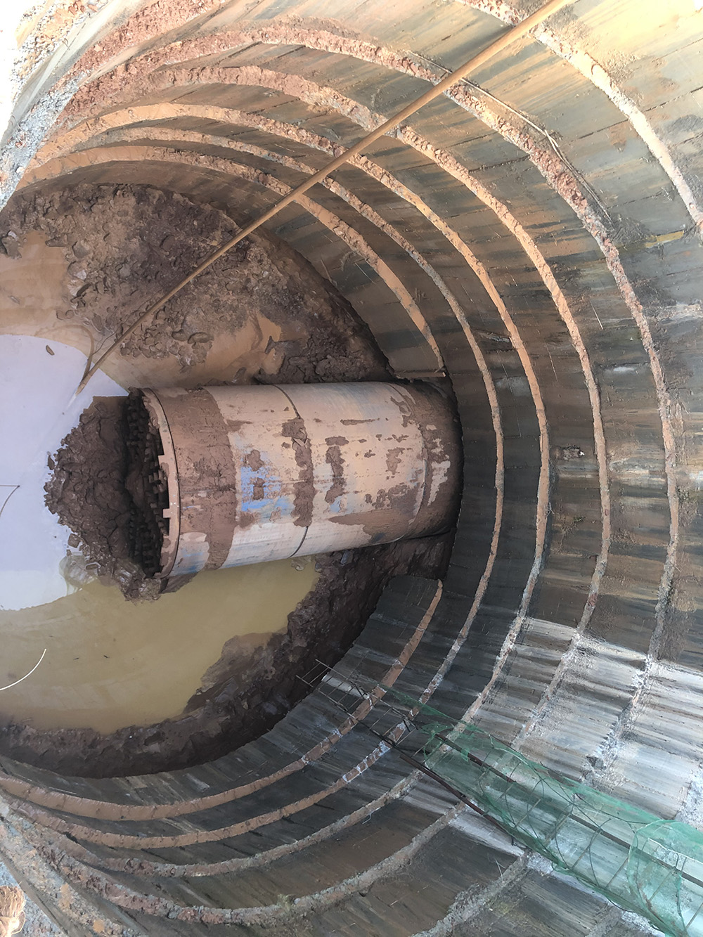當(dāng)機(jī)頭全部進(jìn)入后封閉后,開始由機(jī)頭向管外壁注觸變泥漿,使管外壁形成泥漿套,起到減阻、潤滑作用。其中的膠質(zhì)能將套管外圍的沙土膠化粘結(jié),從而避免套管外側(cè)的沙土擾動(dòng)與塌陷。