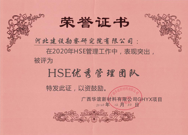 為此,廣西華誼新材料有限公司GHYX項(xiàng)目工程部特發(fā)來表揚(yáng)信,并授予我項(xiàng)目管理團(tuán)隊(duì)“質(zhì)量優(yōu)秀團(tuán)隊(duì)”、“HSE優(yōu)秀團(tuán)隊(duì)”榮譽(yù)稱號,對四名先進(jìn)個(gè)人予以嘉獎(jiǎng)。