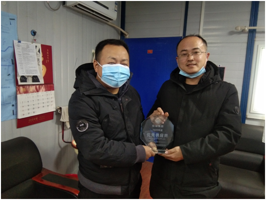 公司邯鄲項目部自2013年以來先后承接了河北安居房地產(chǎn)開發(fā)集團有限公司的安居東城S5、S6地塊沉降觀測項目、政通二期東西地塊基坑監(jiān)測項目、廣平縣水岸瀾苑基坑監(jiān)測和沉降觀測項目。2020年12月份,河北安居房地產(chǎn)開發(fā)集團有限公司對其開發(fā)項目監(jiān)測單位進行首次評比,業(yè)主方各項目負責人均認為我公司服務態(tài)度好,安全防護、防疫措施到位,數(shù)據(jù)反應及時準確,最終確定我公司為河北安居房地產(chǎn)開發(fā)集團有限公司2020年度優(yōu)秀供應商,并于2021年1月8日下午由政通二期項目李延琪經(jīng)理頒發(fā)優(yōu)秀供應商獎牌,以表彰我公司作為參建方所付出的努力,并表示以后有新項目將會優(yōu)先選擇我公司。