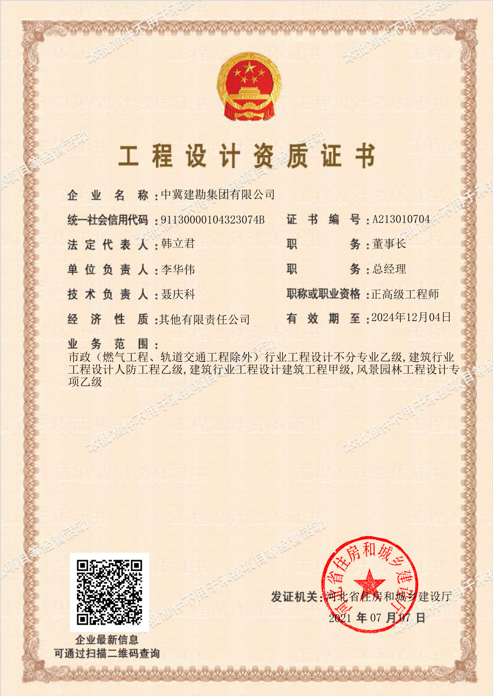 公司于2021年7月7日取得了風景園林工程設計專項乙級資質(zhì)證書,可承擔中型以下規(guī)模風景園林工程項目和投資額在2000萬元以下的大型風景園林工程項目的設計。
