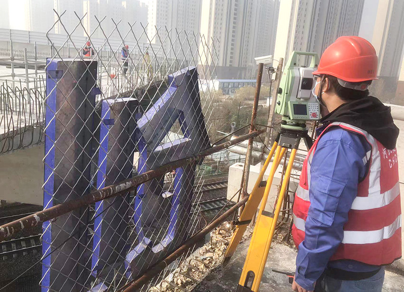 教育路辛中橋是辛集市重點(diǎn)民心工程,立交橋建成后將成為辛集市新的地標(biāo)性建筑,徹底改善辛集市南北方向交通狀況,極大方便辛集市南部20萬(wàn)人與城區(qū)之間的出行。主橋跨越既有石德鐵路,施工時(shí)為了不影響鐵路線的正常運(yùn)營(yíng),采用平面轉(zhuǎn)體的方法施工。也就是先在平行于鐵路方向搭建主橋,待主橋修建完成并滿足要求后順時(shí)針?lè)较蜣D(zhuǎn)體62.24°至成橋位置,最終和立交橋引橋合攏,實(shí)現(xiàn)教育路立交橋的貫通。轉(zhuǎn)體橋梁的監(jiān)控監(jiān)測(cè)對(duì)梁體能否順利完成轉(zhuǎn)體至關(guān)重要。