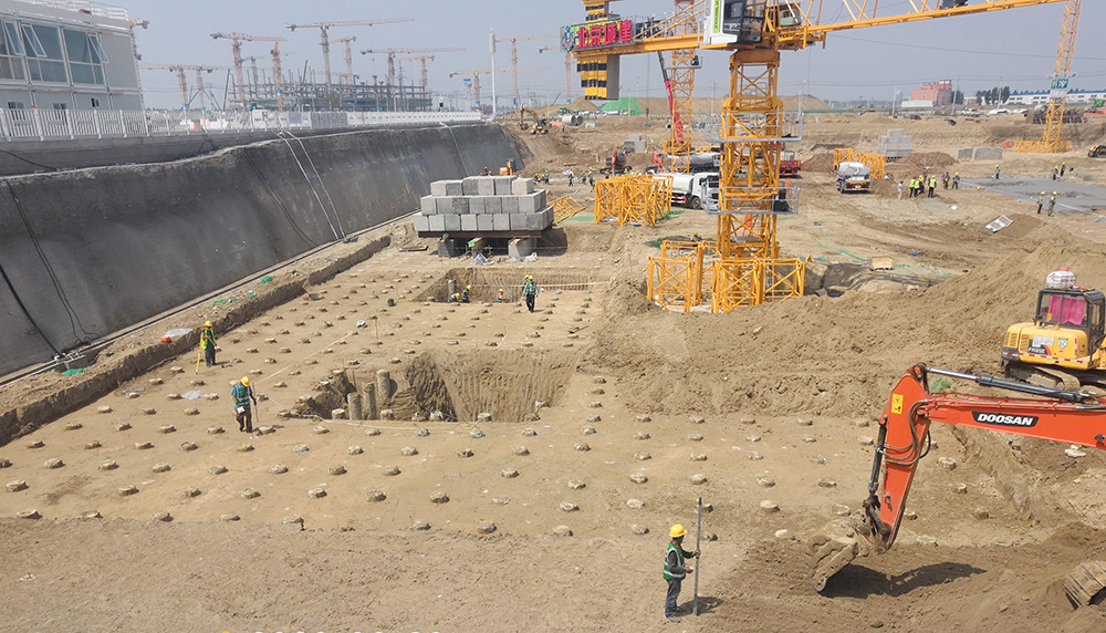 受中國(guó)雄安集團(tuán)城市發(fā)展投資有限公司委托,我公司承擔(dān)了雄安新區(qū)容東片區(qū) B1 組團(tuán)安置房及配套設(shè)施項(xiàng)目的土方工程、基坑支護(hù)工程(樁錨支護(hù),土釘墻和錨桿(索))、地基處理工程(水泥粉煤灰碎石樁)。