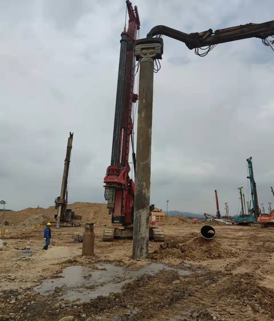 本工程自2021年01月18日開工,2021年09月24日完工。共完成旋挖灌注樁直徑(600mm)4776根、直徑(800mm)170根,混凝土等級C30、C35P8兩種等級,直徑600mm樁端入中風(fēng)化板巖≥1.2m,直徑800mm樁端入中風(fēng)化板巖≥1.6m。