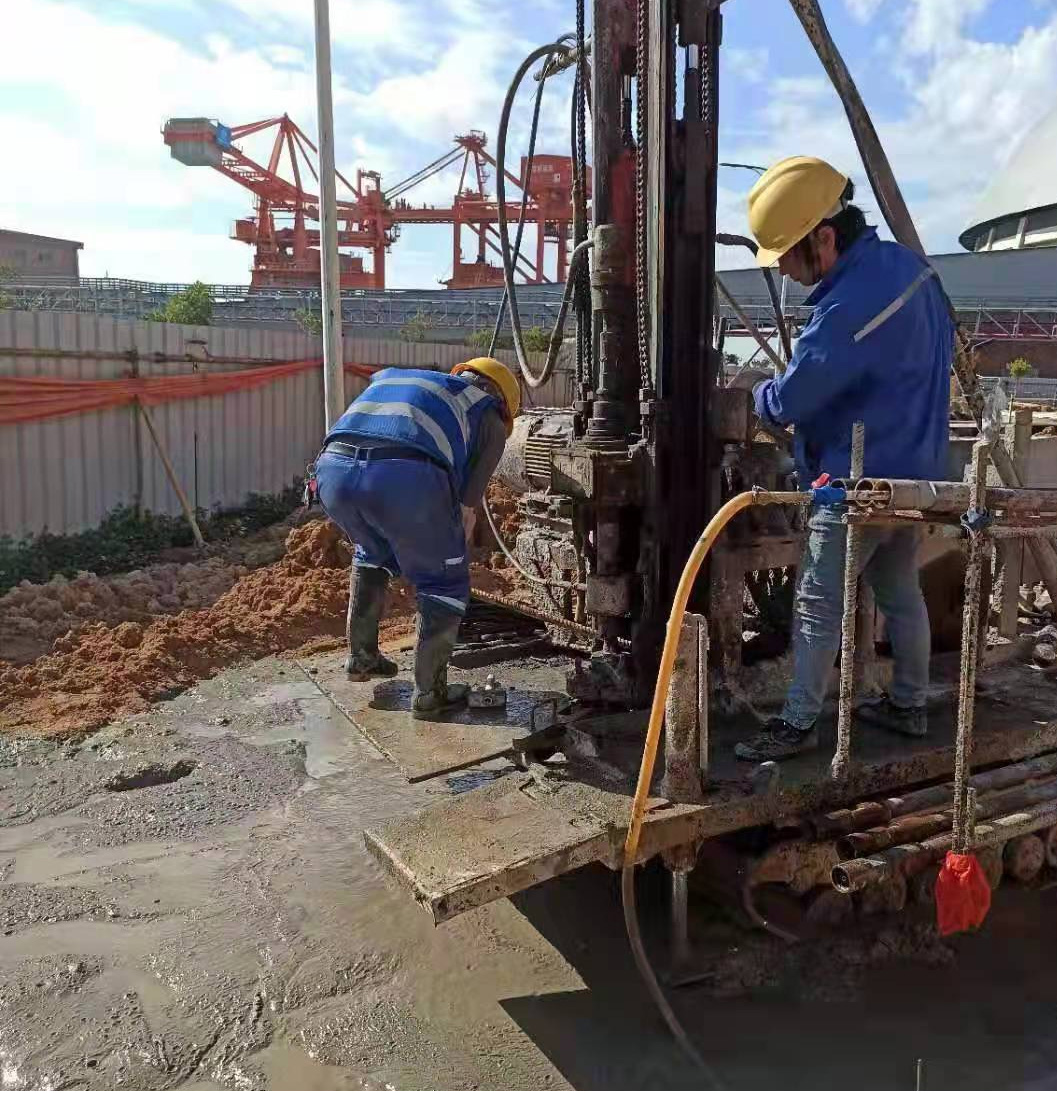 本工程建設(shè)地點位于廣東省汕尾市,受陸豐寶麗華新能源電力有限公司委托,我公司承擔(dān)本項目樁基施工。工程量包括Φ1000mm的灌注樁80根、Φ700mm的高壓旋噴樁樁80根。灌注樁為嵌巖樁,混凝土強度等級為C30,設(shè)計要求嵌入中風(fēng)化巖層,且嵌巖深度不小于1D,且樁長不小于15m。高壓旋噴樁樁體有效直徑700mm,有效樁長不小于9m,同時滿足樁底標高達到強風(fēng)化花崗巖面。