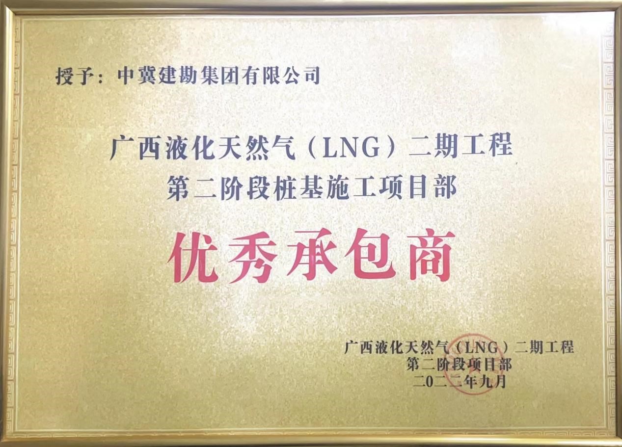 廣西液化天然氣LNG項目5#6#儲罐樁基項目是國家管網(wǎng)集團北海液化天然氣有限責(zé)任公司非常重視的項目。我公司自2022年04月承接了廣西LNG二期項目儲罐樁基施工,本項目于2022年5月20日開始,7月11日完成。從施工開始,本項目24小時晝夜不間斷施工,為保障工程高質(zhì)量高效率完成,施工期間,建設(shè)單位、PMC單位、監(jiān)理單位及施工單位配備了充足的管理人員及施工人員,在疫情肆虐,天氣炎熱,雨季臺風(fēng)等一系列困難重重之下,廣西LNG項目部全體員工保持高度的工作熱情,克服一切艱難險阻,順利完成了樁基施工全部任務(wù)。樁基檢測結(jié)果全部為Ⅰ類樁,保質(zhì)保量的完成了各個里程碑節(jié)點目標(biāo),榮獲國家管網(wǎng)集團北海液化天然氣有限責(zé)任公司廣西北海LNG二期項目部的表揚信及優(yōu)秀優(yōu)秀承包商集體榮譽。