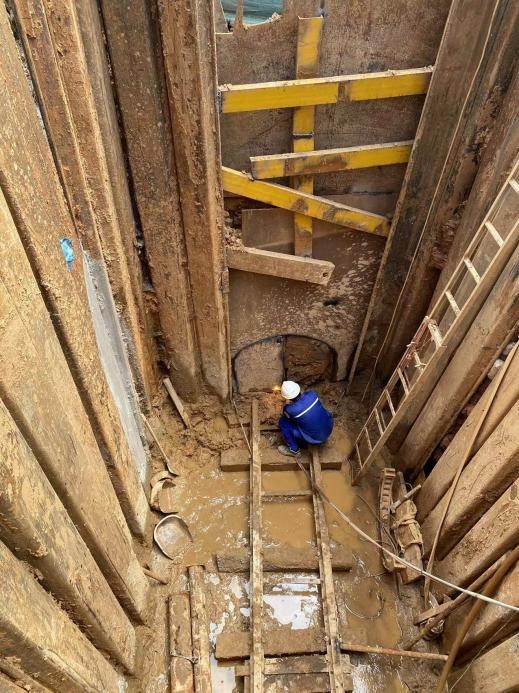 本工程因施工區(qū)域位于場(chǎng)內(nèi)道路兩側(cè),施工空間受限,人工頂管工作基坑開(kāi)挖尺寸受限,且不能放坡開(kāi)挖,并且現(xiàn)場(chǎng)消防水管、光纖管等既有管線多,地下水位淺,施工難度較大。定向鉆穿越施工同樣也是探明地下既有管線,按圖紙要求并考慮延長(zhǎng)設(shè)計(jì)穿越路徑,并在穿越過(guò)程中通過(guò)傳感器發(fā)出的信號(hào)及時(shí)調(diào)整偏差,在項(xiàng)目部的精心組織和實(shí)施下,最終順利完成所有路段的管道穿越任務(wù)并交付。