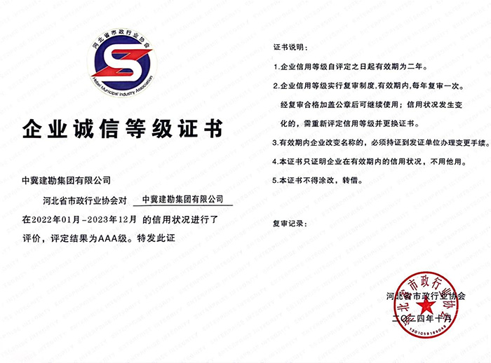 集團(tuán)公司榮獲“河北省市政行業(yè)AAA級誠信企業(yè)”榮譽(yù)稱號