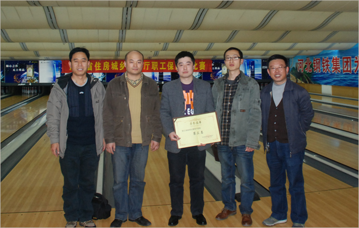 11月10日,河北省住房和城鄉(xiāng)建設(shè)廳職工保齡球比賽在太行賓館保齡球館火熱開賽。我公司派出陳寧、王永周、胡建林、王利鋒、唱曉剛組成的河北建勘保齡球隊,角逐男子團(tuán)體和個人排名賽。在熱火朝天的比賽中,我參賽選手士氣高漲,在比賽中學(xué)習(xí)揣摩,在比賽中實踐,最終在這項完全陌生的運動項目中獲得總分1200分,取得了團(tuán)體第三名的好成績。