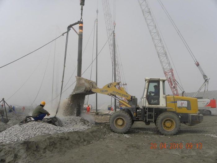 儲(chǔ)罐振沖碎石樁工作量:碎石樁每罐基礎(chǔ)1519根,共6076根,樁徑1300㎜/1200㎜,樁長30m,總方量318512m3。
