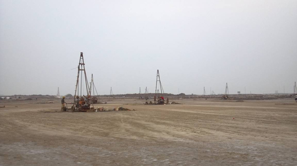 一期勘探孔451個,總進尺17351m;二期勘探孔475個,總進尺18310m。勘探過程中采用了鉆探、靜力觸探、標準貫入試驗、波速測試、電阻率測試等多種方法。根據(jù)現(xiàn)場揭露的土層和建設單位提供的建筑物結(jié)構(gòu)型式、基礎形式、基礎埋深、地基基礎方案等,對可能的天然地基、復合地基和樁基礎分別進行了分析及建議。